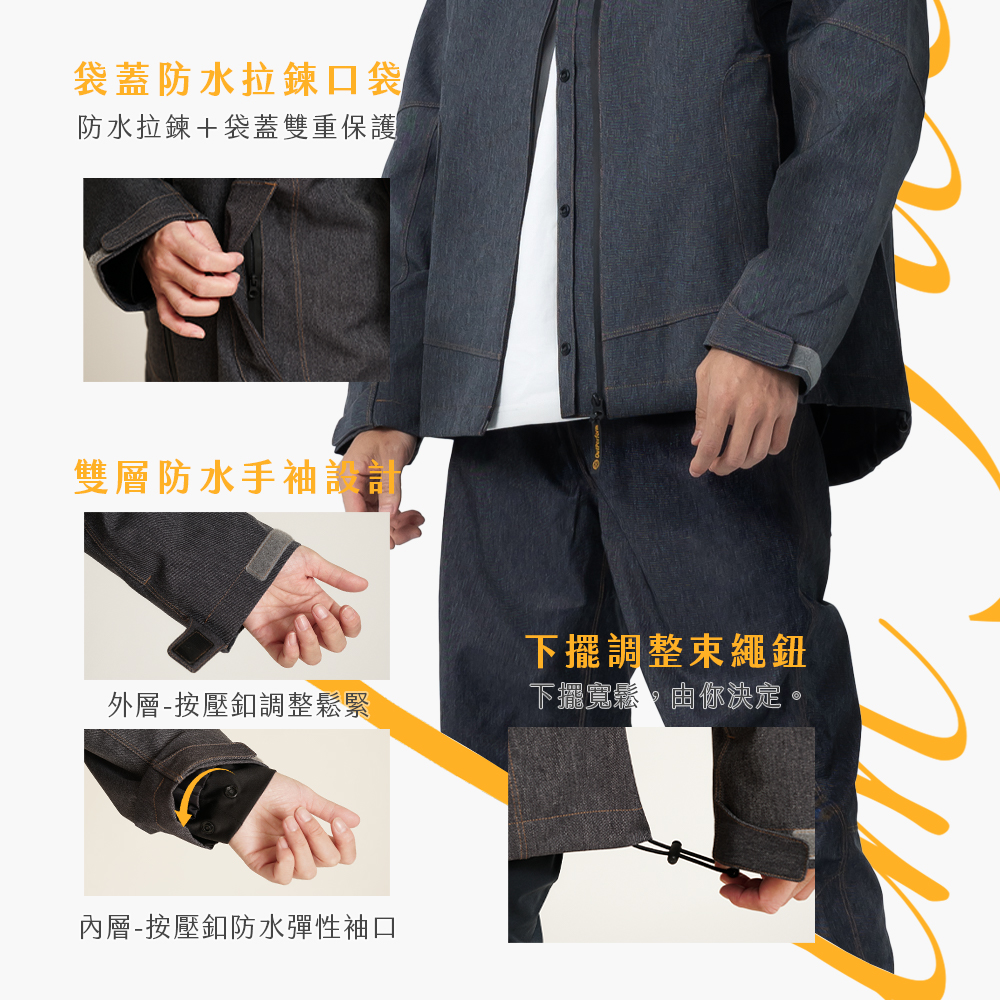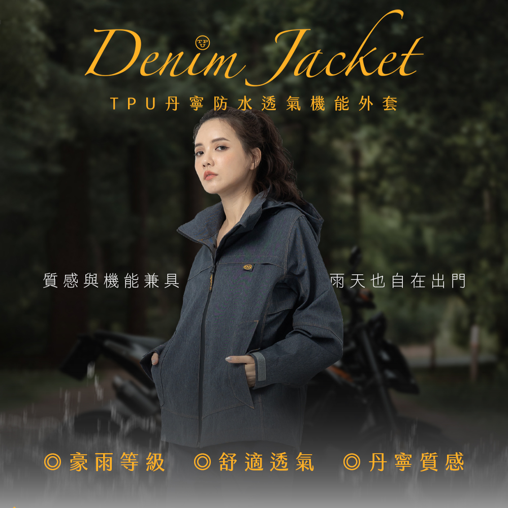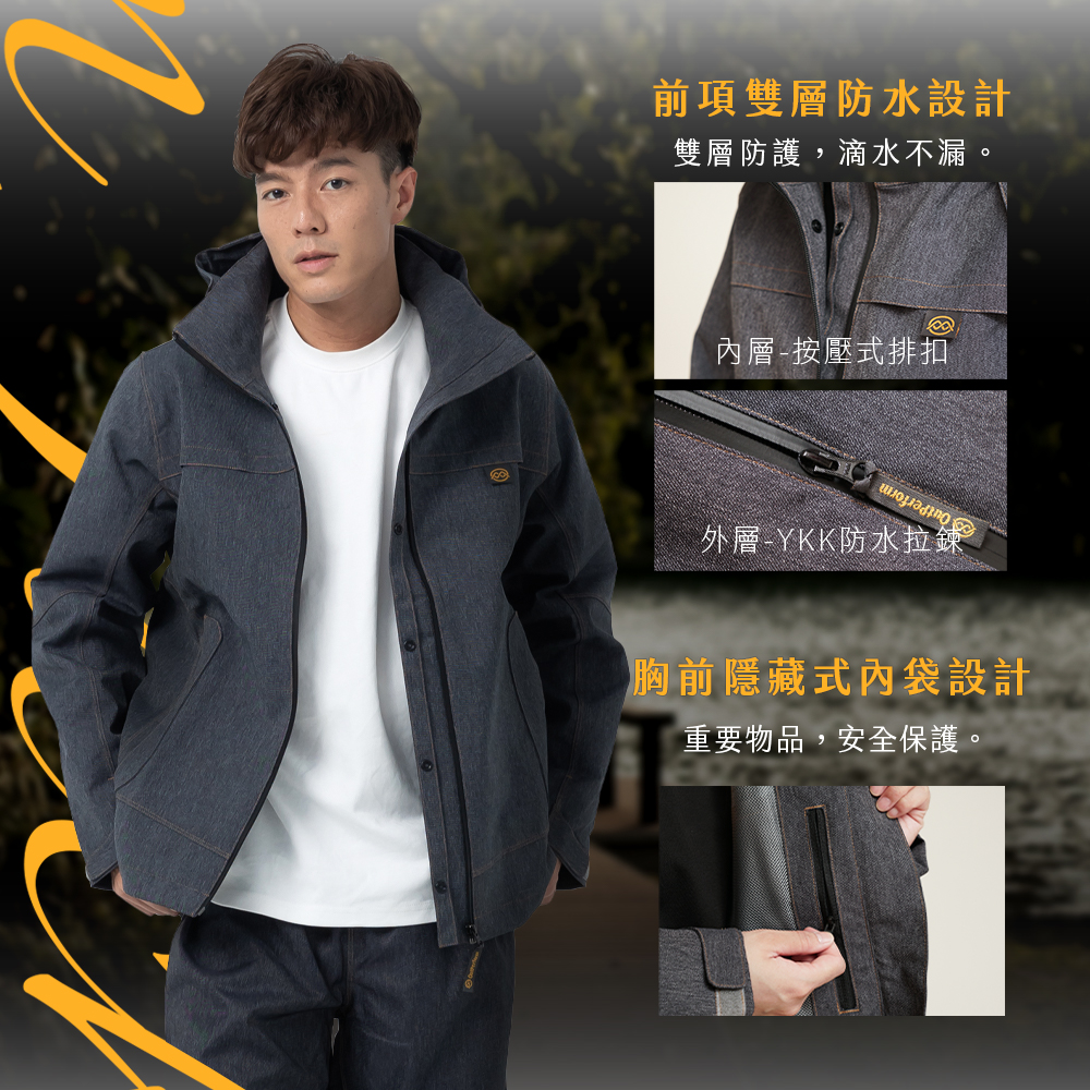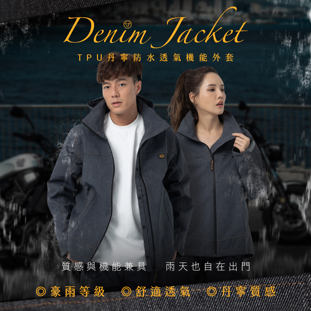 【雨傘家族】牛仔丹寧防水透氣外套|耐水壓20000mmH2O|胸前/腋下/背部透氣|丹寧質感布料