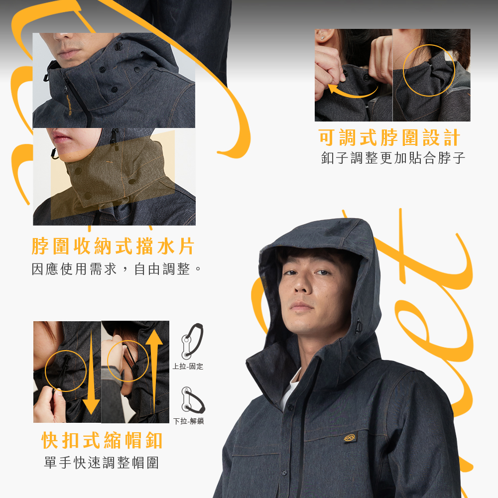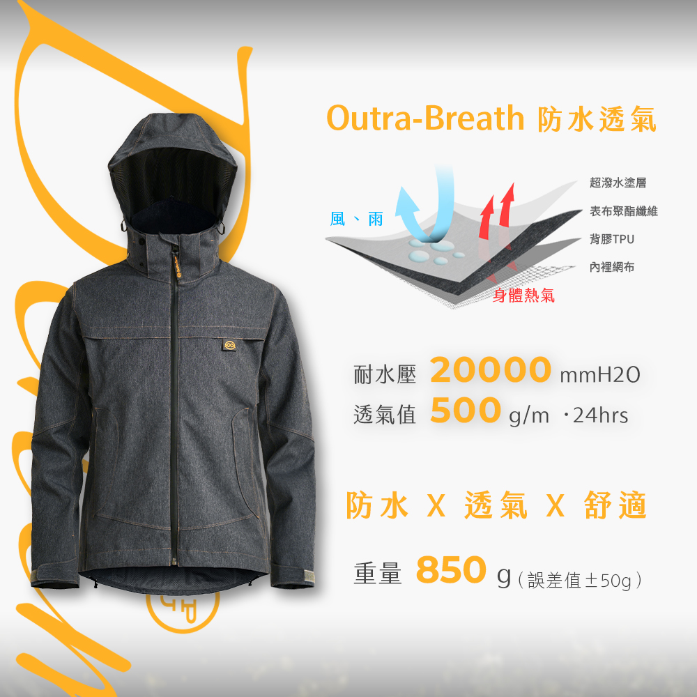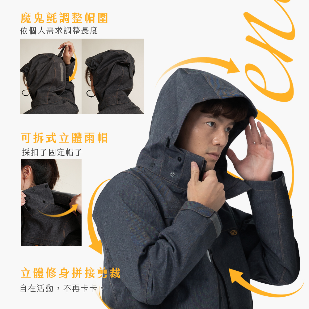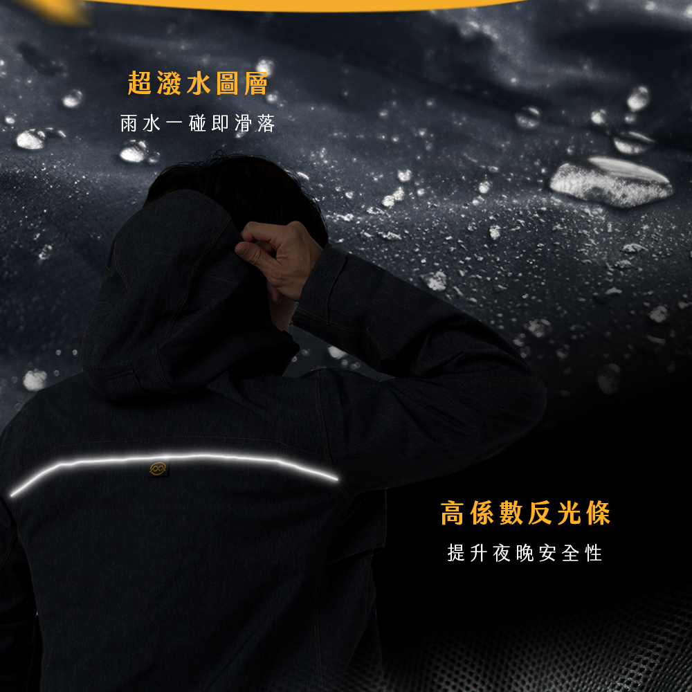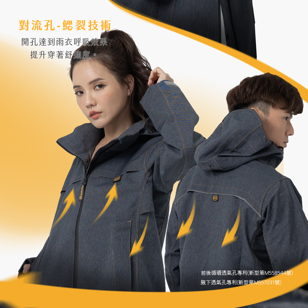 【雨傘家族】牛仔丹寧防水透氣外套|耐水壓20000mmH2O|胸前/腋下/背部透氣|丹寧質感布料